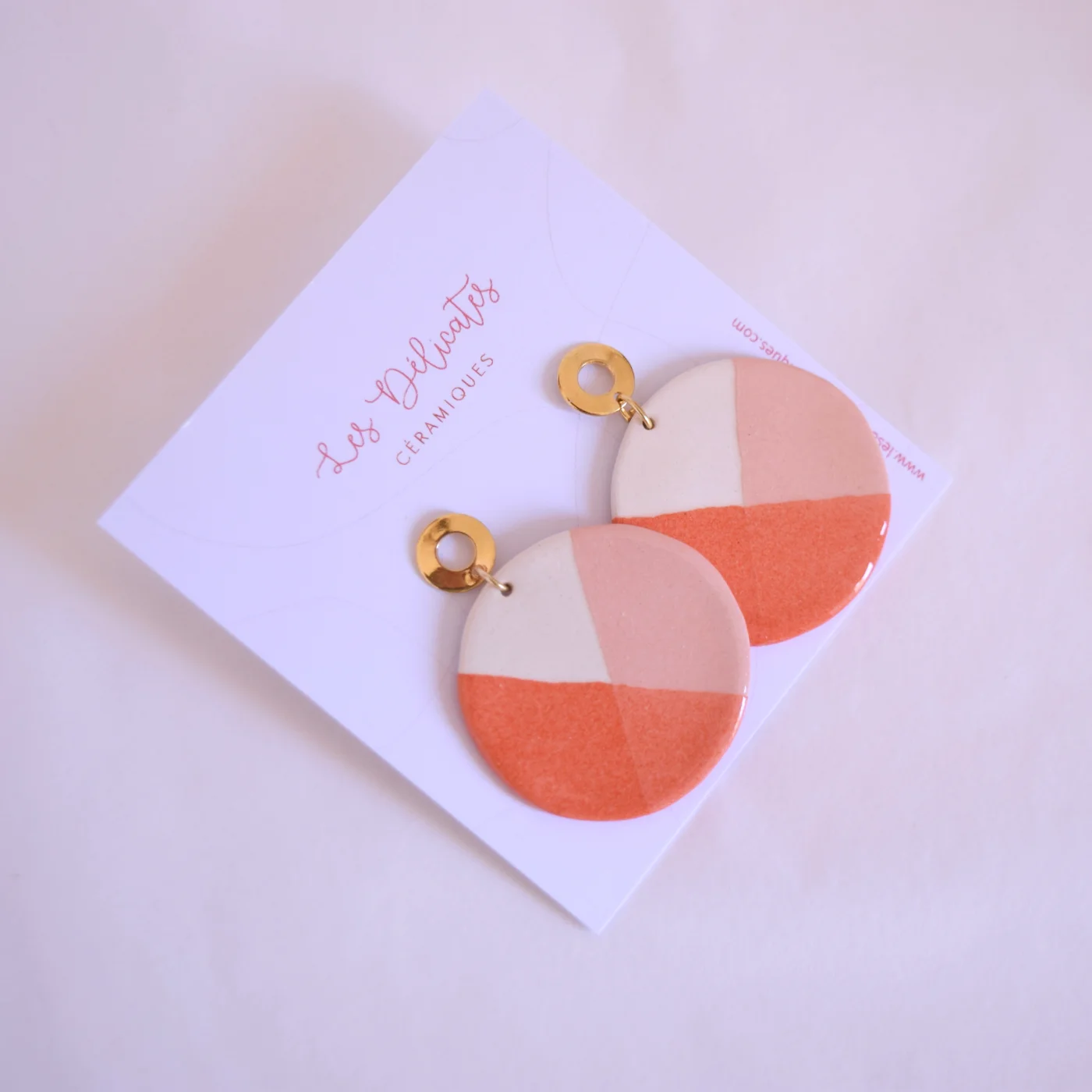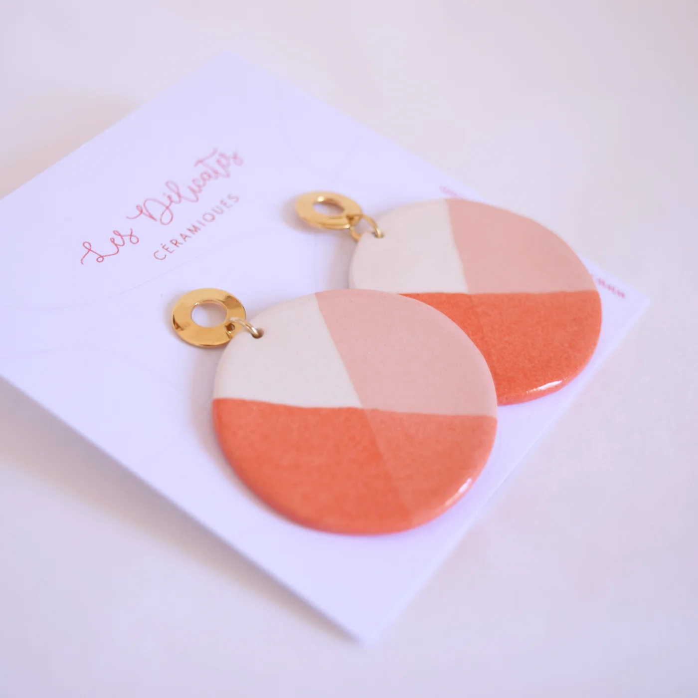 Lunes – Boucles d’oreilles en céramique – Rose & Orange