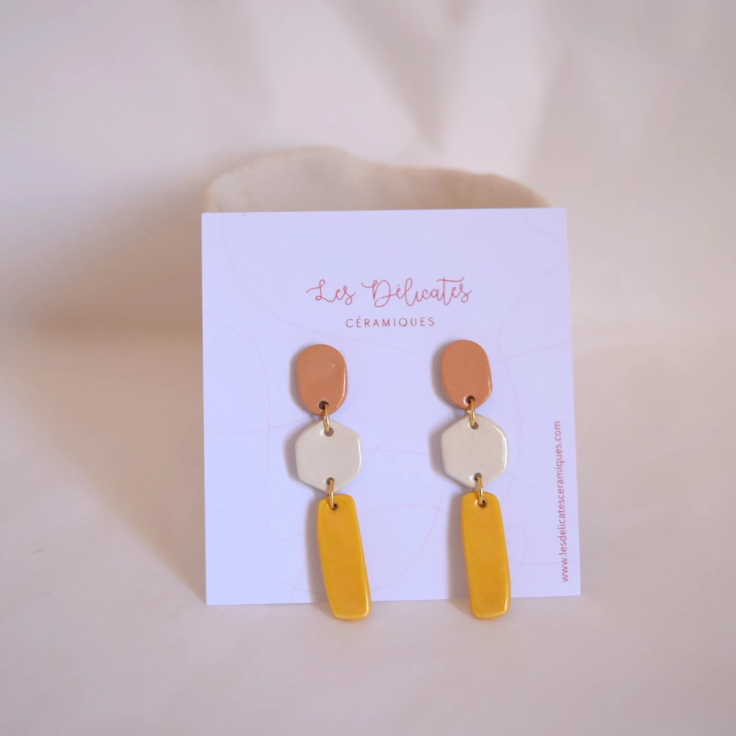 Chaque élément de cette boucle d’oreille en céramique étant réalisée à la main, de légères différences peuvent apparaître entre la pièce reçue et les photos, assurant ainsi le caractère unique et artisanal de chaque bijou.